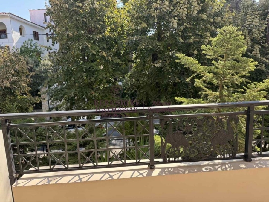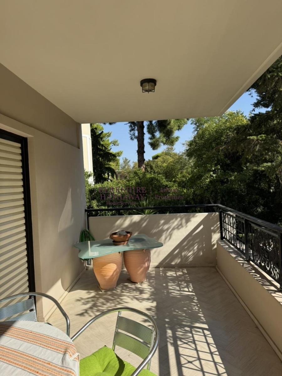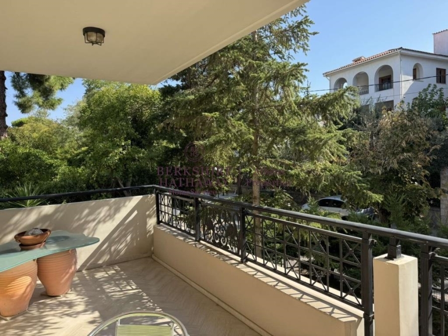 Το διαμέρισμα περιλαμβάνει τρία άνετα υπνοδωμάτια, τρία πλήρως εξοπλισμένα μπάνια, ευρύχωρο σαλόνι με τζάκι και άμεση πρόσβαση σε μεγάλες βεράντες, καθώς και ανεξάρτητη κουζίνα. Οι περιμετρικές βεράντες προσφέρουν απρόσκοπτη θέα στο πράσινο.