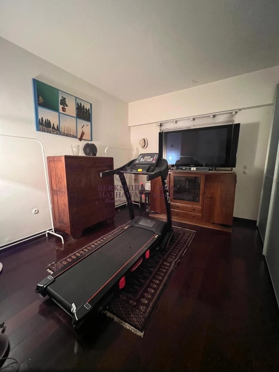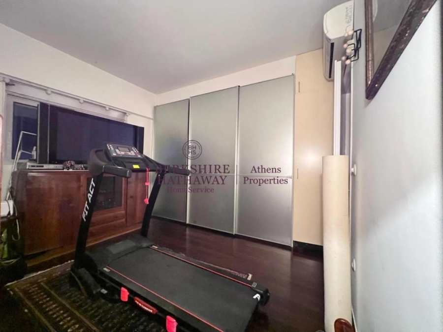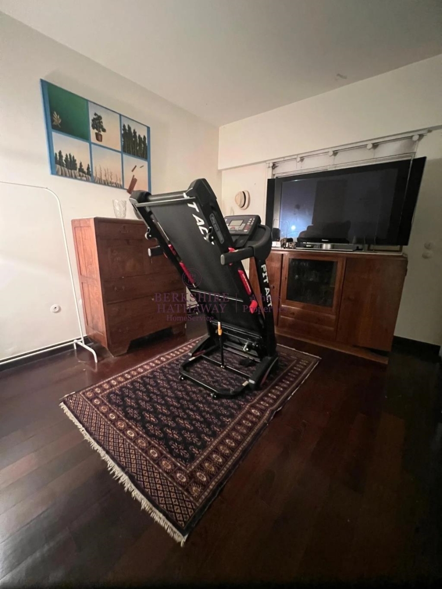 Το διαμέρισμα διαθέτει κουφώματα αλουμινίου με σίτες και ηλεκτρικά ρολά, τρεις τηλεοράσεις, κλιματισμό, αυτόνομη θέρμανση με πετρέλαιο μέσω κεντρικής εγκατάστασης, γρήγορο internet, πτυσσόμενο διάδρομο γυμναστικής, πόρτα ασφαλείας και ανελκυστήρα. Συνοδεύεται από μία μεγάλη αποθήκη και δύο κλειστές θέσεις στάθμευσης (συνολικά 25 τ.μ.) στο υπόγειο, με πρόσβαση μέσω ηλεκτρικής πόρτας.