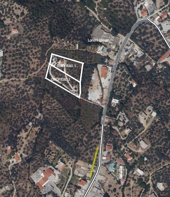 Στο πρώτο οικόπεδο, εμβαδού 2.842 τ.μ., υπάρχουν δύο κατοικίες: μία πλήρως αποπερατωμένη διώροφη κατοικία συνολικού εμβαδού 120 τ.μ., με όμορφη θέα και επιπλέον 10 τ.μ. βοηθητικών χώρων, καθώς και μία ισόγεια ημιτελής κατοικία με σοφίτα, εμβαδού 70 τ.μ., με δυνατότητα άμεσης ολοκλήρωσης.