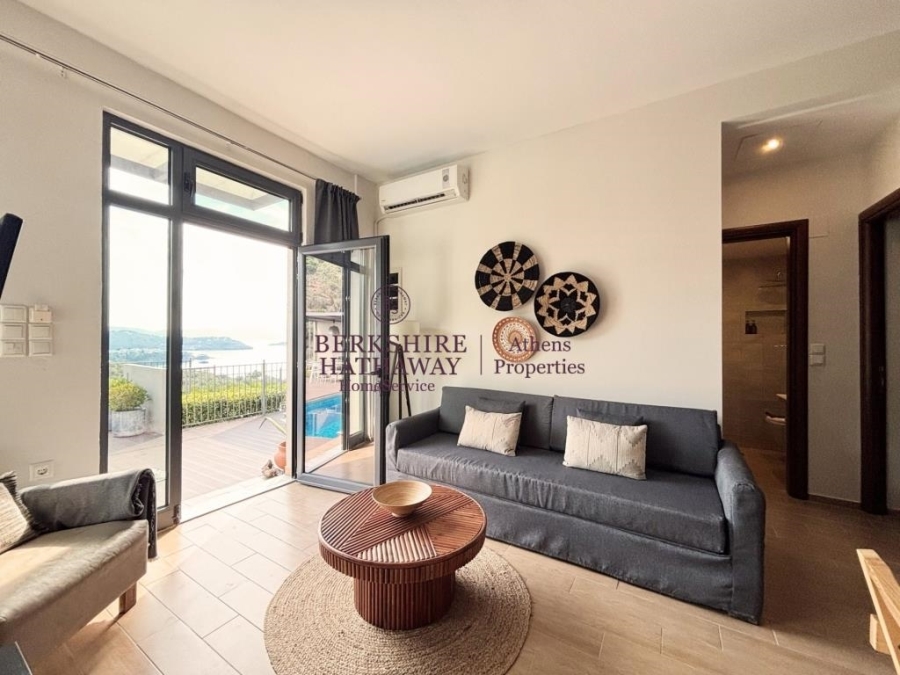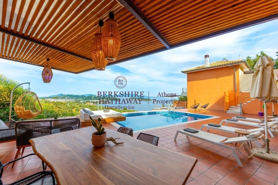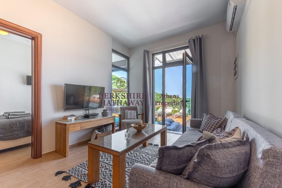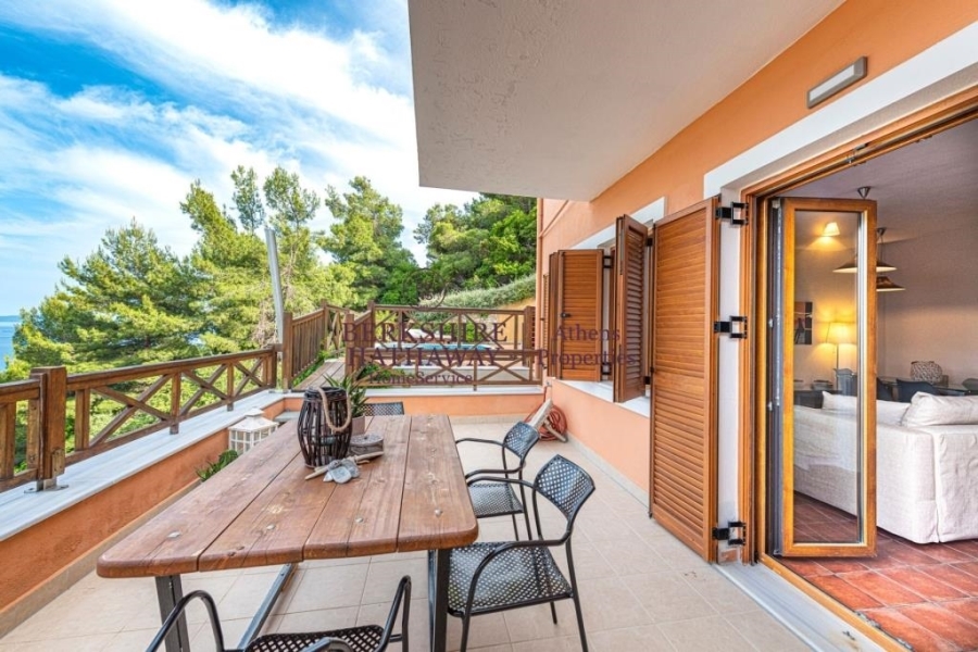 Πωλείται πολυτελές συγκρότημα βιλών στη Σκιάθο, στην προνομιακή και ήσυχη περιοχή Βασιλιάς, χτισμένο σε οικόπεδο 5.300 τ.μ., με συνολική επιφάνεια κτισμάτων 400 τ.μ. και 216 τ.μ. καλαίσθητα διαμορφωμένων εξωτερικών χώρων. Το ακίνητο προσφέρει ανεμπόδιστη πανοραμική θέα στη θάλασσα και το φυσικό τοπίο, απόλυτη ιδιωτικότητα και σύγχρονη αρχιτεκτονική υψηλών προδιαγραφών. Αποτελείται από τρεις ανεξάρτητες διώροφες βίλες, ένα ευρύχωρο διαμέρισμα και δύο μοντέρνες σουίτες, με συνολικά 12 υπνοδωμάτια και 10 μπάνια, πλήρως επιπλωμένα και εξοπλισμένα με εντοιχισμένες κουζίνες, κλιματισμό, τζάκι και μεγάλες βεράντες με θέα στο Αιγαίο. Οι ιδιωτικές πισίνες, οι προσεγμένοι κήποι, οι χώροι χαλάρωσης και το BBQ δημιουργούν ένα ιδανικό περιβάλλον πολυτελούς διαβίωσης και φιλοξενίας. Διαθέτει ακάλυπτο χώρο στάθμευσης για 7–8 αυτοκίνητα και βρίσκεται σε κοντινή απόσταση από την παραλία Βασιλιάς, ενώ απέχει μόλις λίγα λεπτά από τη Χώρα της Σκιάθου, το λιμάνι και το διεθνές αεροδρόμιο. Πρόκειται για εξαιρετική επιλογή τόσο ως ιδιωτική εξοχική κατοικία όσο και ως επενδυτικό ακίνητο υψηλής απόδοσης, σε έναν από τους πιο δημοφιλείς και κοσμοπολίτικους προορισμούς της Ελλάδας. Berkshire Hathaway HomeServices Athens Properties, Τηλ. Επικοινωνίας: +302105736781, email: info@bhhsathens.gr