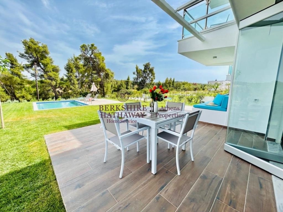 This wonderful Maisonette is located in one of the most beautiful spots of Halkidiki, on the peninsula of Kassandra, very close to the magnificent Sani beach and the cosmopolitan Sani Resort, with thousands of acres of natural forest and beautiful sandy beaches.The distance from the nearest beach is only 3.5 km. (approx. 8 minutes drive)The house of 115 sq.m. extends over two levels. The house is located in a complex of maisonettes and has a private garden and a private pool. The area surrounding the property is beautifully landscaped with gardens and lawn while the complex includes for common use of the owners Tennis Courts.Three (3) private parking spaces belongs to the Maisonette.The view is open to all levels, whether you are on the terraces of the floor or enjoying the comfort of the garden and the coolness of the pool.The lower level, with the entrance of the Maisonette, is consisted of the Living Room, the kitchen in an open plan space, one bedroom and a full bathroom. The internal staircase that connects the two levels leads to the upper floor where we can find two bedrooms and a full bathroom.Kassandra is one of the most famous places in Halkidiki, with endless sandy beaches and pine-covered areas. In the area, well-organized tourist facilities of world-famous luxury hotels have been developed with respect to the environment. Picturesque villages with excellent food, beautiful beaches and special natural beauty characterize the area.Kassandra is located 74 km (about 50 minutes` drive) from the International Airport Macedonia of Thessaloniki.The property of exceptional beauty, of high construction standards and privileged location is a unique investment opportunity for both private and professional use.Berkshire Hathaway HomeServices Athens Properties, Tel: +302105736781, email: info@bhhsathens.gr