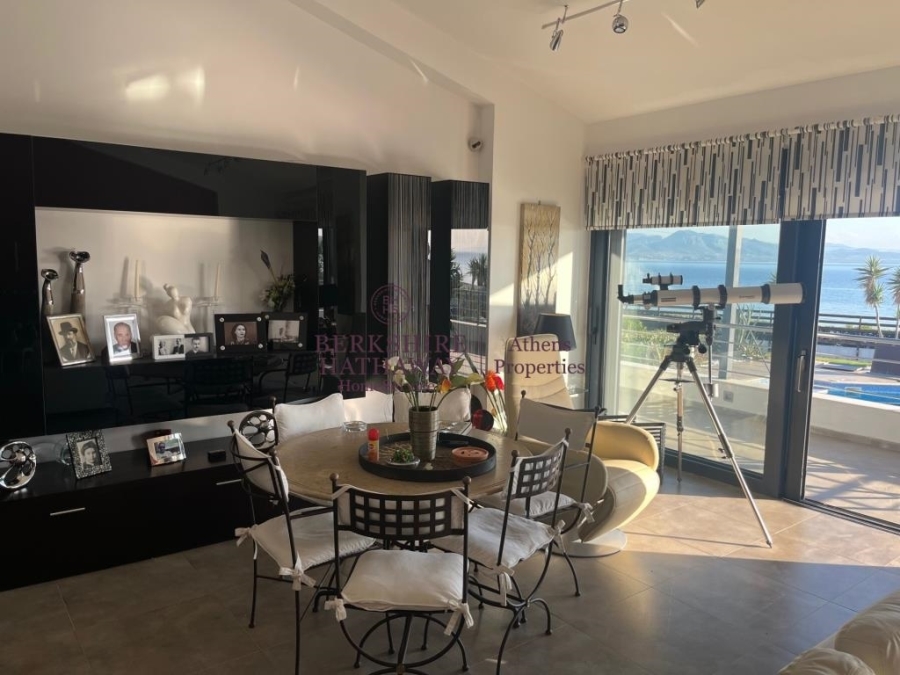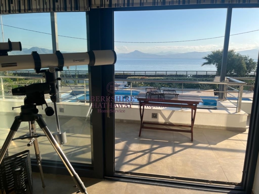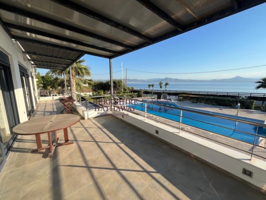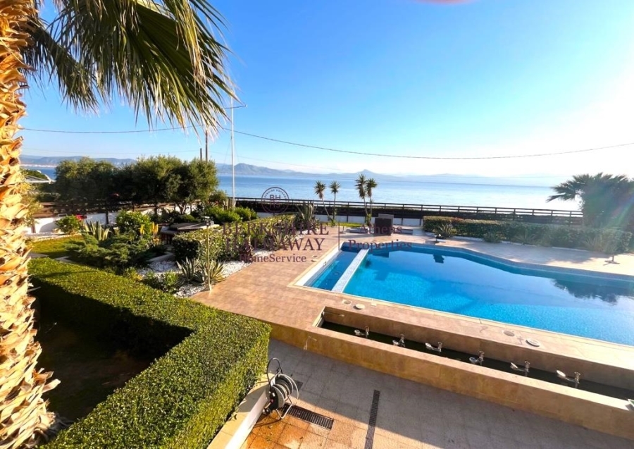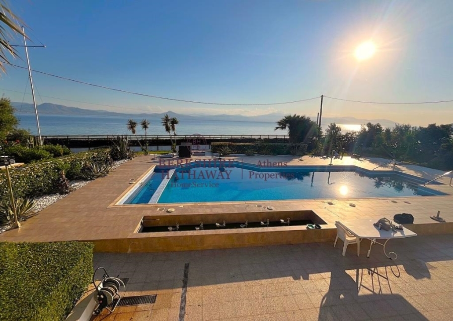 This wonderful two-level Villa is located in one of the very beautiful spots of the Prefecture of Corinth, overlooking the Corinthian Gulf, on a distance of less than 7 kilometers away from the very beautiful and cosmopolitan Loutraki, with its excellent beaches and 12 kilometers from Corinth Town. The house of 287 sq.m. is located a few meters only away from the sea, hence the direct access to it and the completely unobstructed views. The Villa is surrounded by a plot of approximately 1,800 sq.m., landscaped with a beautiful garden and has a large swimming pool and covered parking space for five cars.The sea view is unobstructed from all levels, whether you are on the terraces or you are enjoying the comfort of the garden or the coolness of the pool or even probably the additional comfort facilities such as the outdoor bar. Wherever you are, you will be enchanted by the abundant light, the blue of the sea and the wonderful sunset, while in front of you lies a very nice beach with fine pebbles and a view of the Corinthian Gulf.The entrance to the residence can be reached from both levels. The two levels of the Villa can maintain their autonomy, since access between the two levels is achieved either by internal elevator or by an external staircase.On the lower level, we find the Living Room with the fireplace, the Kitchen in an open plan space, two master bedrooms (with en-suite bathrooms), WC, the elevator that gives access to the two levels and an additional auxiliary area with steam bath installation and storage room. From this level there is direct access to the pool and the surrounding garden area.The upper level comprises the second Living Room with a fireplace too, a surprising bar area with limited kitchen facilities use and a large master bedroom with ensuite bathroom and dressing room. On this level there is a large terrace that ensures beautiful views, both to the pool and the garden as well as to the sea that stretches right in front of this unique seaside property.In addition to the highly functional areas of the two levels, the property has an outdoor large storage room of 46 sq.m., other auxiliary areas, photovoltaic panel system, outdoor water tank, jacuzzi, generator and other useful daily pleasures.Loutraki is 84 kilometers away from Athens and has easy and quick access either by road through the Athens-Corinth National Road or by train to Corinth.The seaside villa of exceptional beauty, of high standards of construction, privileged location, with unlimited sea views and luxurious amenities is a unique investment opportunity for both private and professional exploitation.Berkshire Hathaway HomeServices Athens Properties, Tel: +302105736781, email: info@bhhsathens.gr