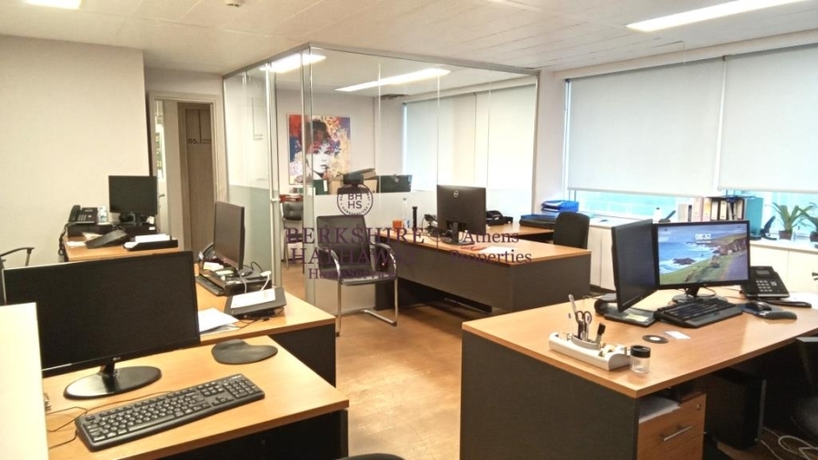 Marousi, Soros, Office For Rent 453 sq.m., Property status: Refurbished, Floor: 3rd, 1 level, Heating: Autonomous - Air conditioning system, 4 WC, 6 parkings, Building Year: 1995, Energy Certificate: C, Floor type: Tiles, Type of Door frames: Aluminum, Features: Elevator, Security door, Security alarm, Furred Ceiling, Structured Cabling, Internal Staircase, Metro, Airy, Roadside, Bright, AirConditioning. Berkshire Hathaway HomeServices Athens Properties, Tel: +302105736781, email: info@bhhsathens.gr