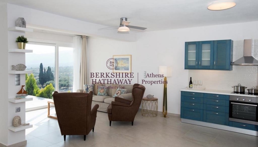 Galaxidi, Villa For Sale, 174 sq.m., Property Status: New Construction, Floor: Ground floor, 3 Levels, 3 Bedrooms 1 Kitchen, 2 Bathrooms, View: Sea view, 3 parking spaces, Floor type: Tiles, Type of door frames: Aluminum, Features: Electric Appliances, Internal Staircase, Double Glazed Windows, Balcony Cover, Balconies, For Investment, Airy, Roadside, Bright, AirConditioning, New Construction.The luxury - brand new villa for sale is in the picturesque nautical city of Galaxidi.It is located in a complex of 4 independent villas / maisonettes and features a 1.000 sqm private garden, a 32sqm private swimming pool and three parking spaces. The beautiful maisonette meets the best construction standards and has a surrounding area of 5,700 sqm full of aromatic herbs, and fruit-bearing trees.With a breathtaking view to the sea and to the town of Galaxidi, the villa is located right next to a big olive grove, 5-6 minutes walk from the sea and less than 1km from a “blue flag” beach.The three level villa of a total 174sq.m, provides:Three bedrooms, a fully equipped kitchen, two fully equipped bathrooms, a comfortable living room overlooking the swimming pool and the sea, a terrace-veranda of 144 sqm with an automatic tent and another big veranda-balcony connecting the two bedrooms.Galaxidi is located on the west side of the bay of Itea, has a long and important history, well-known sights, picturesque houses and walks and of course beaches with blue and crystal-clear waters. It is 190 km away from Athens and just 35 km away from well-known city of Delphi and 45 km away from the mountainous and very picturesque Arachova with the famous ski resort. Also, in a short distance from beautiful Galaxidi, there are several mountainous or seaside villages for endless excursions, delicious food and swimming.Berkshire Hathaway HomeServices Athens Properties, Tel: +302105736781, email: info@bhhsathens.gr