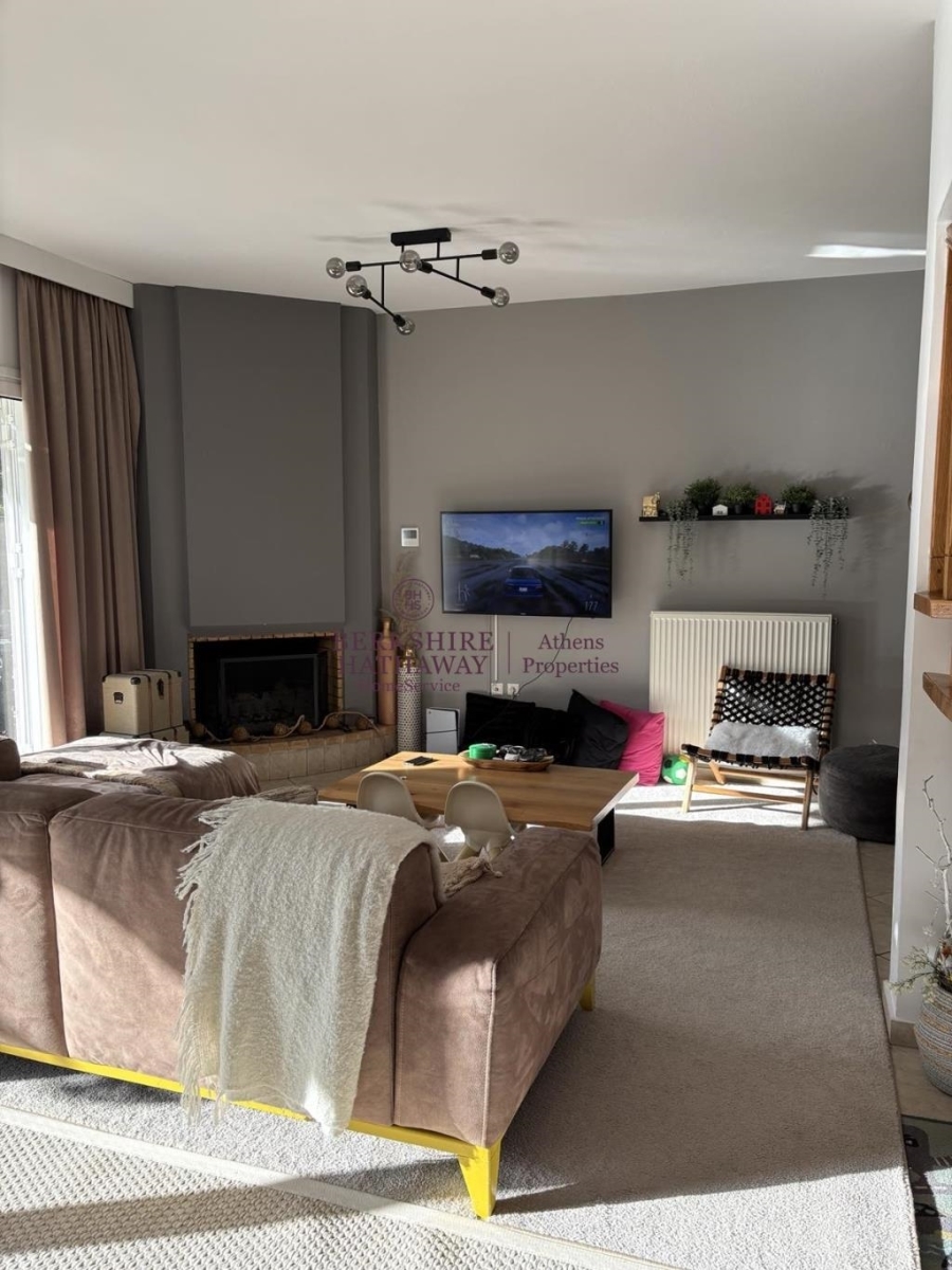 Dionysos, Center, Maisonette For Sale, 230 sq.m., In Plot 1000 sq.m., Property Status: Very Good, Floor: Mezzanine, 3 Level(s), 3 Bedrooms 1 Kitchen(s), 1 Bathroom(s), 1 WC, Heating: Autonomous - Electricity, View: Unlimited, Building Year: 2005, Energy Certificate: B+, 1 parking(s), Floor type: Wooden floors + Tiles, Type of door frames: Aluminum, Features: Security alarm, Storage room, Fireplace, Attic, Night stream, Internal Staircase, Double Glazed Windows, Balcony Cover, Balconies, Airy, Bright, AirConditioning, Back yard (Garden), Renovated, Price: 450.000€. Berkshire Hathaway HomeServices Athens Properties, Tel: +302105736781, email: info@bhhsathens.gr