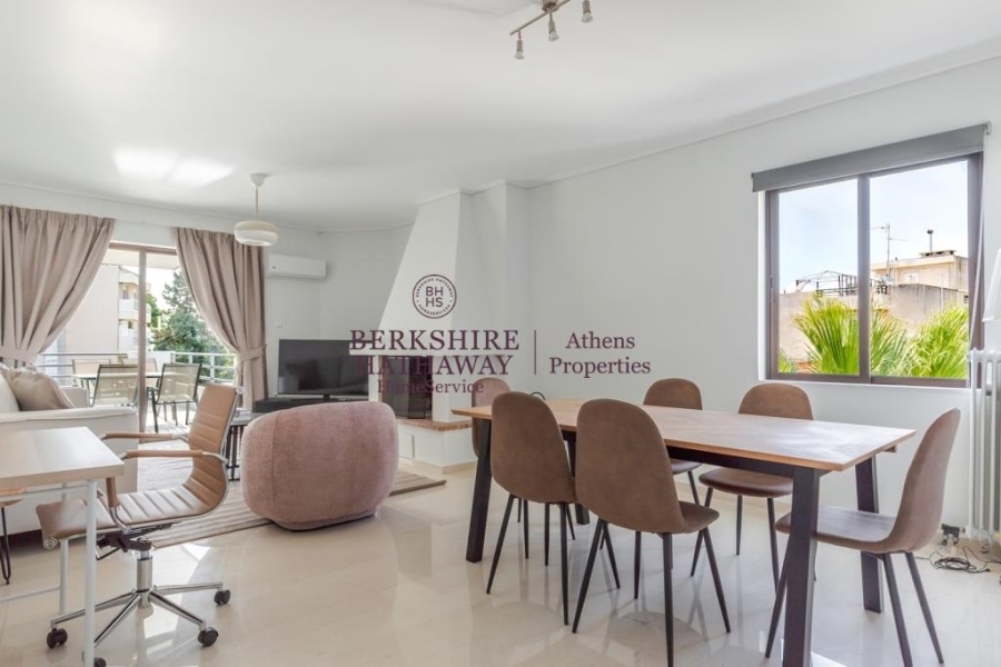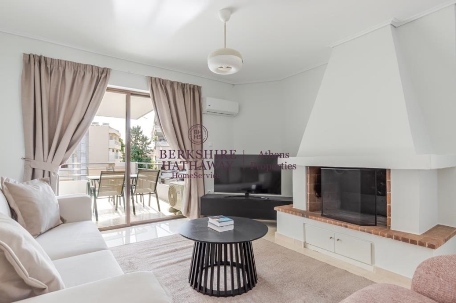 Marousi, Paradeisos, Apartment For Rent, 101 sq.m., Property Status: Very Good, Floor: 3rd, 2 Bedrooms 1 Kitchen(s), 1 Bathroom(s), 1 WC, Heating: Central - Petrol, Energy Certificate: B, 1 parking(s), Floor type: Wooden floors + Tiles, Features: Elevator, Security door, Fireplace, Electric Appliances, Double Glazed Windows, Balconies, For Investment, Furnished, Airy, Bright, AirConditioning, Price: 1.760€. Berkshire Hathaway HomeServices Athens Properties, Tel: +302105736781, email: info@bhhsathens.gr