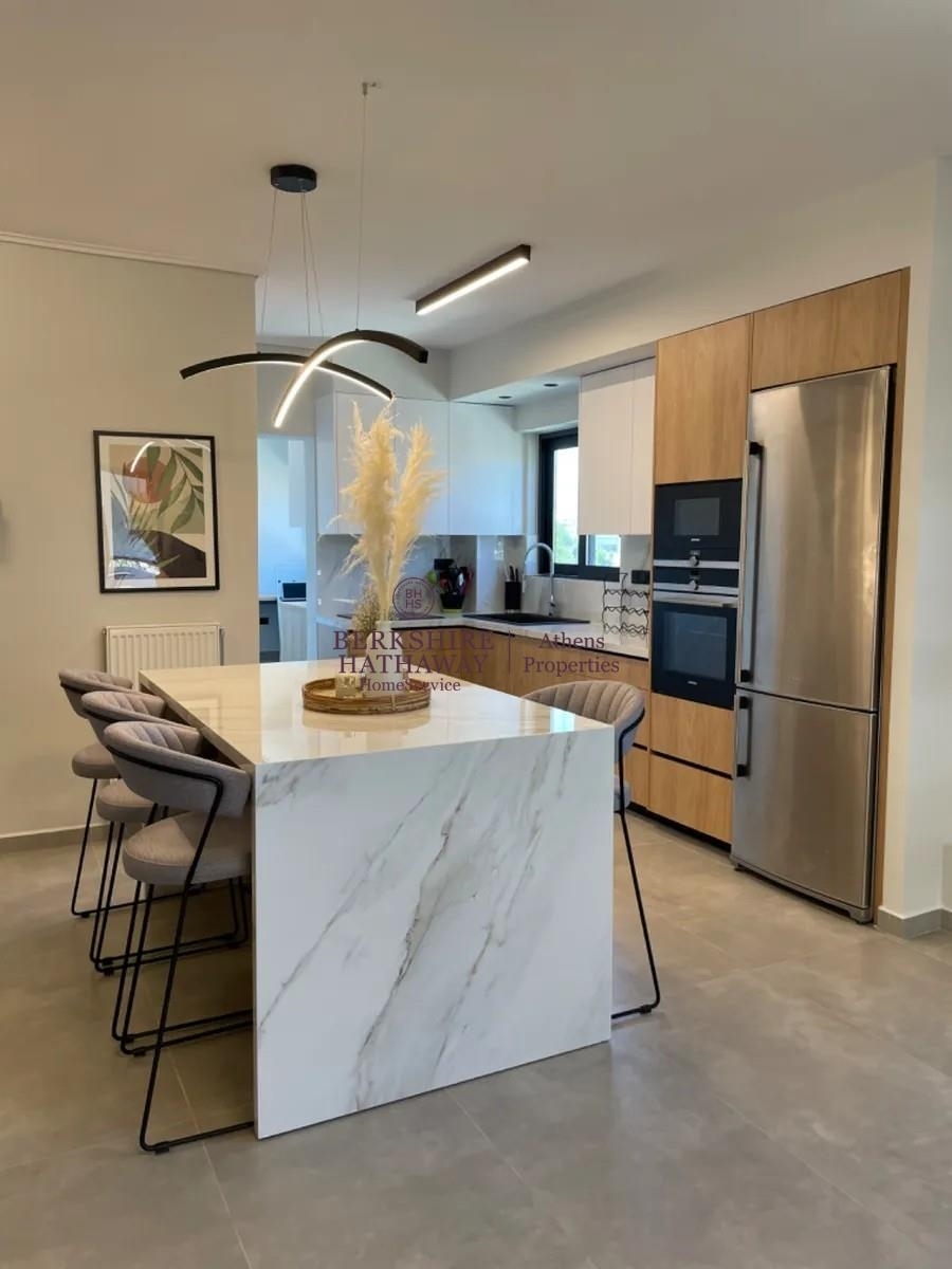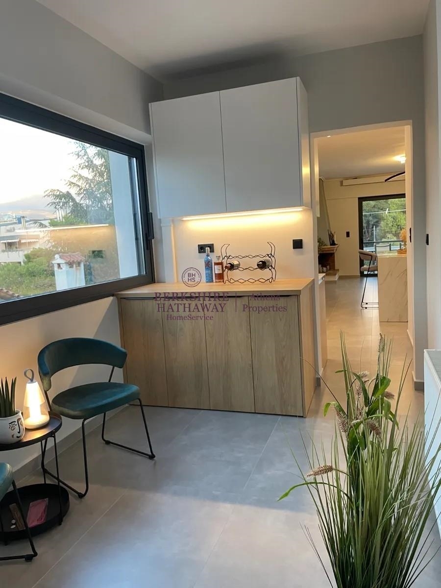 Pefki, Ano Pefki, Apartment For Sale, 128 sq.m., Property Status: Very Good, Floor: 3rd, 4 Bedrooms 1 Kitchen(s), 1 Bathroom(s), 1 WC, Heating: Autonomous - Natural Gas, View: Mountain View, Building Year: 1991, Energy Certificate: A, 1 parking(s), Floor type: Wooden floors + Marble, Type of door frames: Aluminum, Features: Elevator, Security door, Security alarm, CCTV, Storage room, Fireplace, Night stream, Electric Appliances, Double Glazed Windows, Window Screens, Balcony Cover, Balconies, Furnished, Airy, Bright, AirConditioning, Solar water system, Back yard (Garden), Renovated, Price: 470.000€. Berkshire Hathaway HomeServices Athens Properties, Tel: +302105736781, email: info@bhhsathens.gr